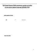 This document contains a complete set of comprehensive questions with verified, accurate, and fully elaborated answers for the TDLR Eyelash Extension Exam (2025–2026). It covers all key topics, including eyelash anatomy, extension techniques, sanitation and safety protocols, product knowledge, client consultation, and industry regulations. Detailed explanations are provided to ensure thorough understanding, practical application, and high exam performance.