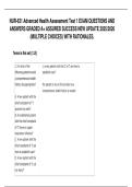 This document contains the latest updated multiple-choice exam questions with verified correct answers and detailed rationales for NUR-631 Advanced Health Assessment Test 1 (2025–2026). It covers comprehensive health history taking, physical examination techniques, diagnostic reasoning, and clinical decision-making across body systems. The material is designed to support focused study, strong clinical understanding, and assured exam success.