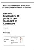 This document contains comprehensive exam-style questions with verified, accurate, and fully elaborated solutions for NURS 617 Pharmacology Exam 2 (2025–2026). It covers advanced pharmacology concepts including drug mechanisms, therapeutic uses, adverse effects, contraindications, interactions, and clinical decision-making. Detailed rationales are provided to support deep understanding, safe medication management, and confident exam performance.