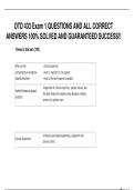This document contains a complete set of verified questions and correct answers for OTD 433 Exam 1. It covers all core topics in occupational therapy, including assessment, intervention planning, therapeutic techniques, and patient care strategies. Detailed explanations are provided to support full understanding, effective exam preparation, and guaranteed success.