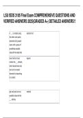 This document contains a complete set of comprehensive exam questions with verified answers for the LSU ISDS 3105 Final Exam (2025). It covers all major topics, including data analysis, statistical methods, business analytics, and decision-making models, with detailed step-by-step solutions to ensure full understanding and effective exam preparation. The material is ideal for review, practice, and achieving top grades.
