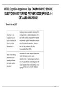 This document contains a complete set of comprehensive questions with verified answers for the MTTC Cognitive Impairment Test (2025). It covers all key topics, including cognitive assessment, memory disorders, dementia, neuropsychological evaluation, and intervention strategies, with detailed explanations to ensure full understanding and effective exam preparation. The material is ideal for focused study and achieving top grades.