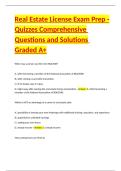 Real Estate License Exam Prep - Quizzes Comprehensive Questions and Solutions Graded A+