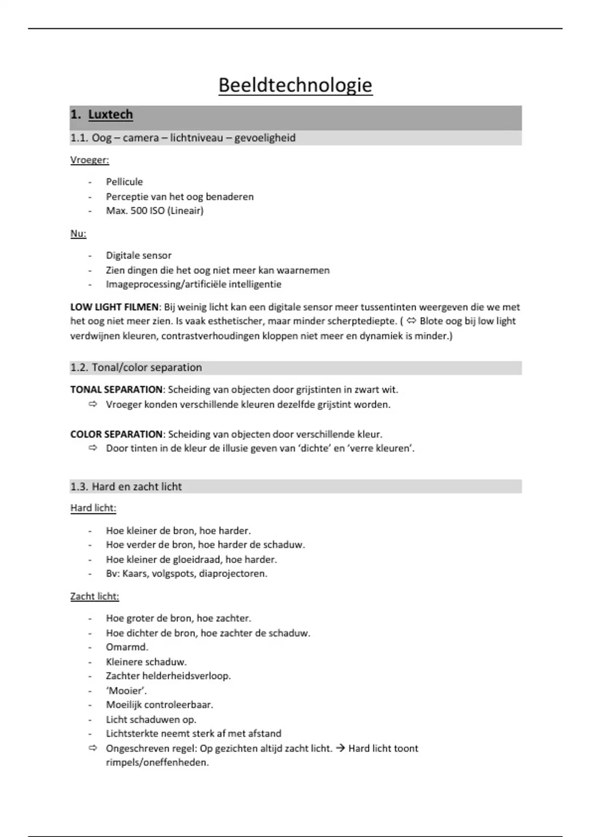 2 samenvattingen voor 2 semesters Beeldtechnologie. Gegeven in het 2de jaar Film, tv en video door Nicolas Cladakis aan het Narafi, Luca School of Arts.