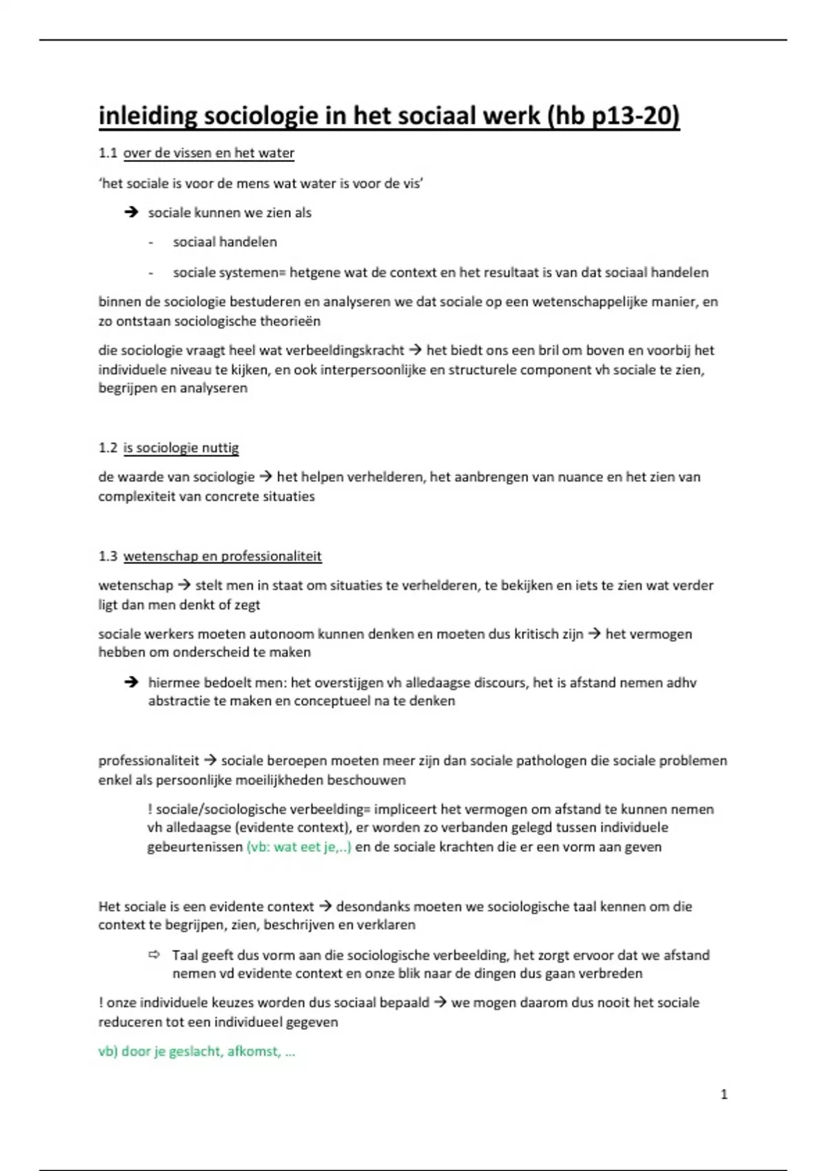 samenvatting sociologie voor SW 'sem 1 en 2, jaar 1) - AP hogeschool
