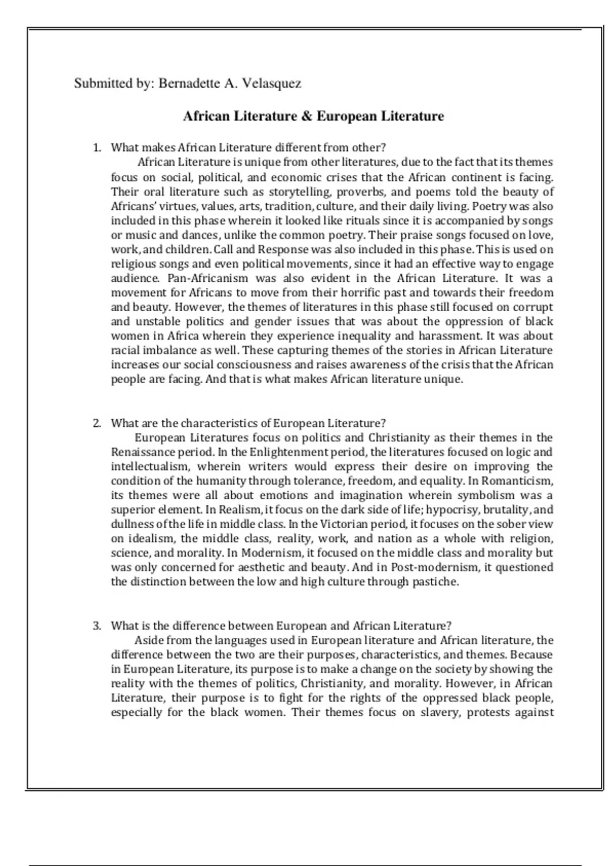 There are different literatures around the world. However, there are 3 spectacular literatures that you can learn today; the African Literature, European Literature, and Philippine Literature. This package is filled with knowledge and rich culture and history as well. Upon purchasing, reading your favorite literatures/ books will be more enjoyable!