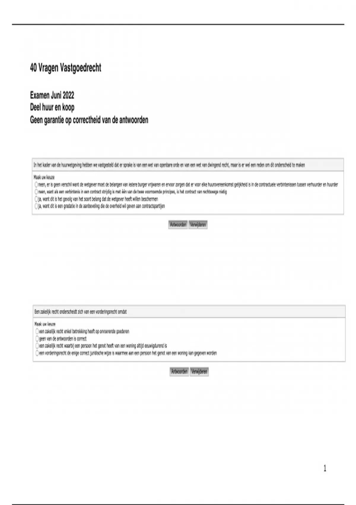 Examenvragen Vastgoedrecht & Gebouwbeheer