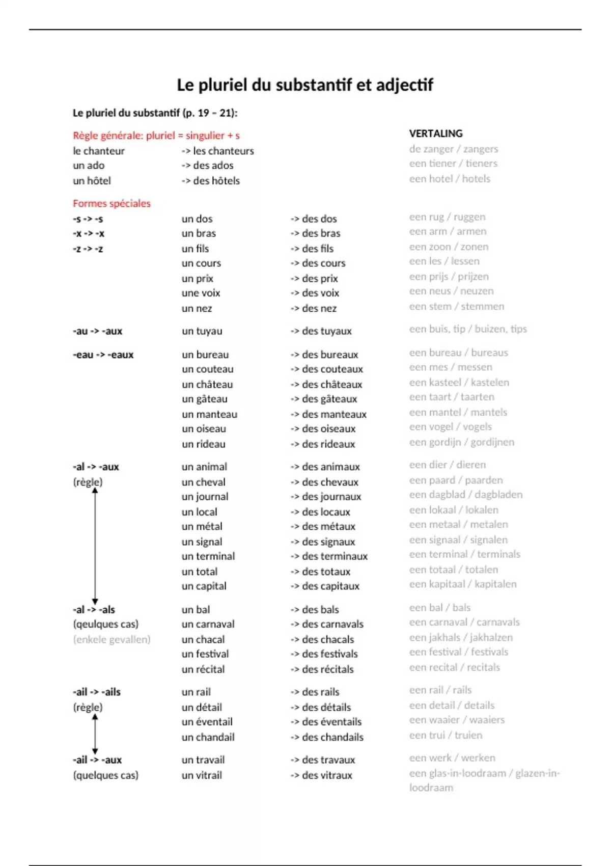 Samenvatting - Frans 'Le pluriel du substantif et adjectif' GO! Onderwijs