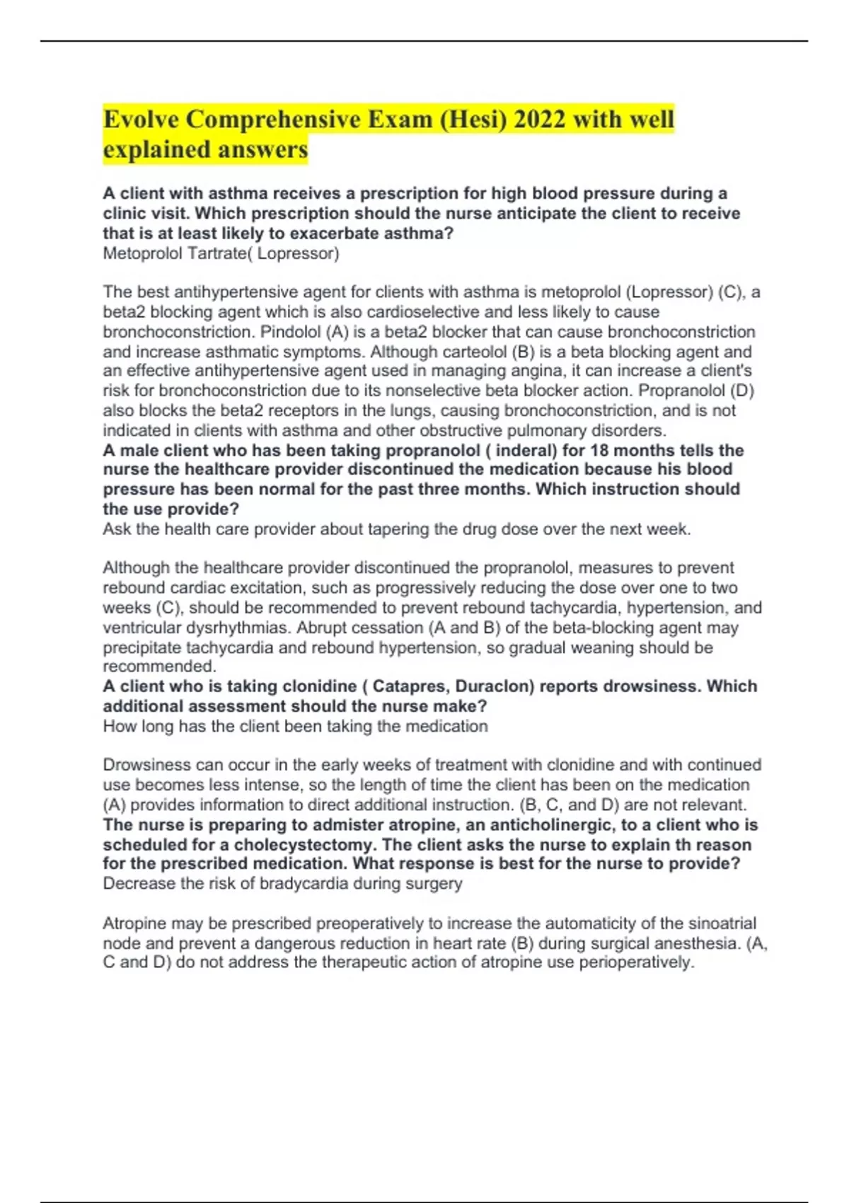 Exam (elaborations)-HESI with Rationale Exam Exam (elaborations)- Pediatric Unit Exam (elaboration- Patient Review Exam (elaborations)- Inflammation Exam (elaborations)- Respiratory Exam (elaborations)-HESI LEVEL 1 PRACTICE EXAM Exam (elaborations)-EXIT HESI Comprehensive B Evolve Practice Exam (elaborations)-Evolve Comprehensive Exam (Hesi)