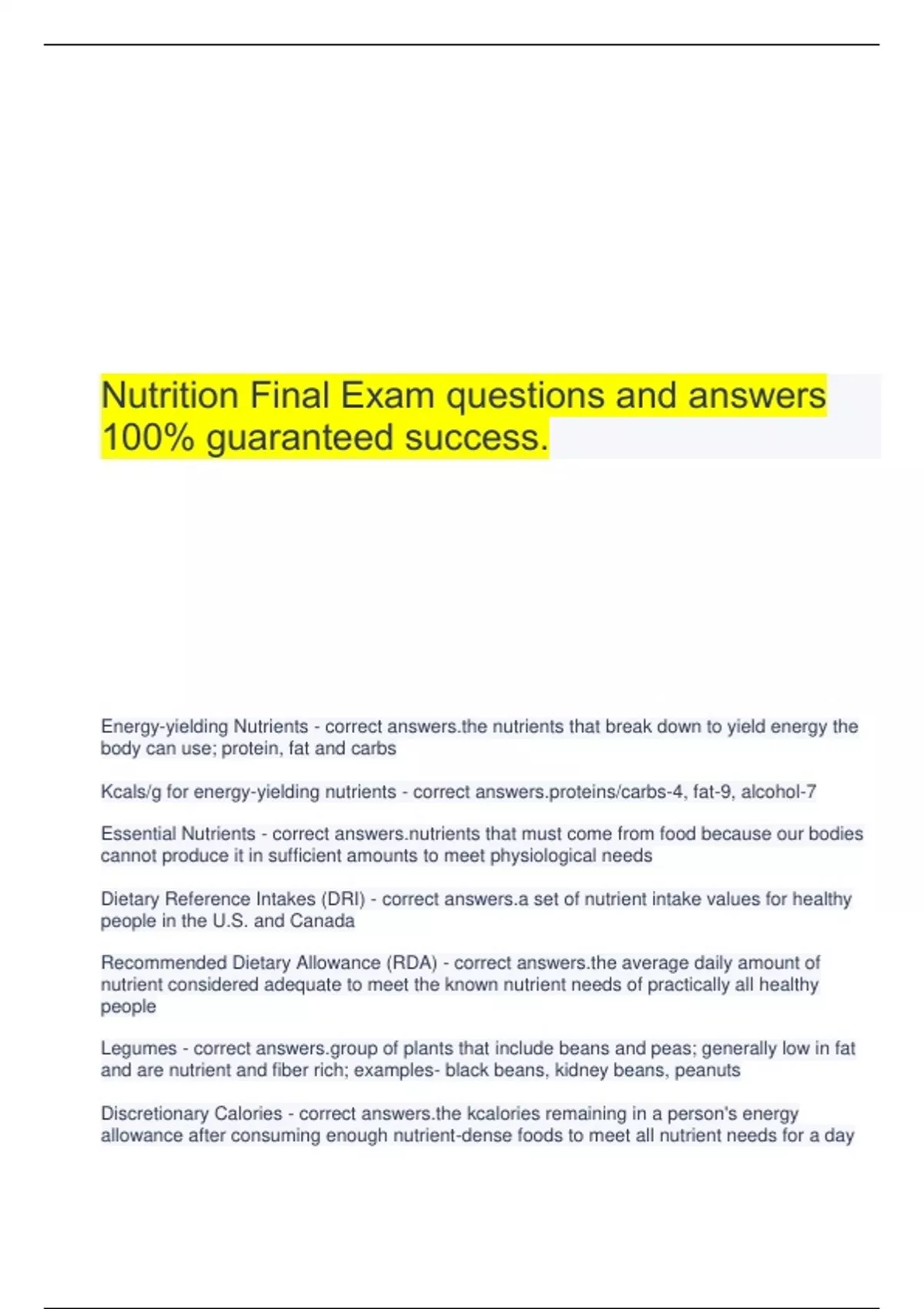 Principles of Nutrition Final Exam questions and answers latest top score.Nutrition Science Final Exam questions and answers 100% guaranteed success.Nutrition Final Exam - Past Questions with complete solutions 2023.Final Exam//Nutrition questions and answers well illustrated.Nutrition Comprehensive Final Exam questions and answers latest top score