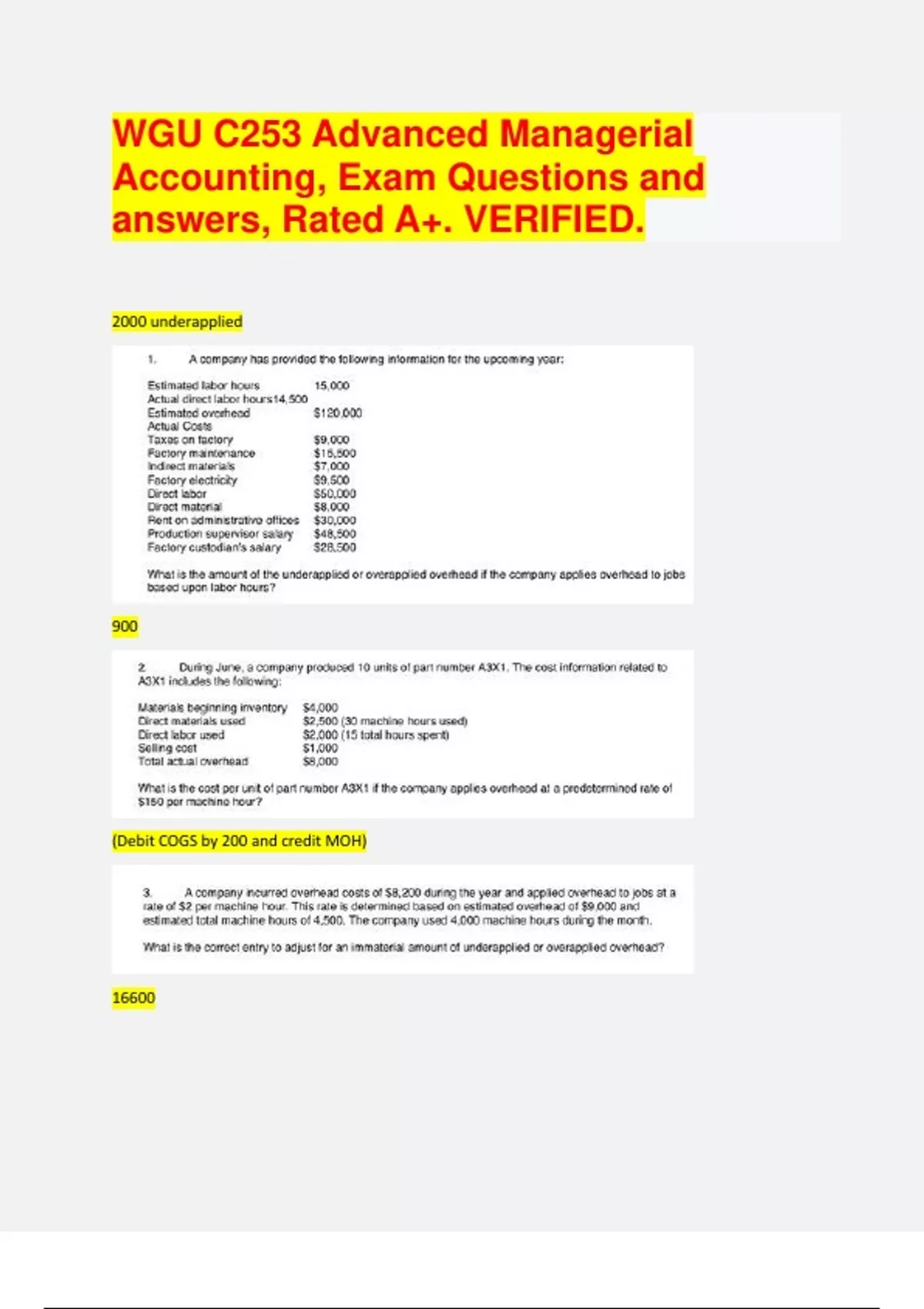 WGU C253 Advanced Managerial Accounting, Bundle. VERIFIED.