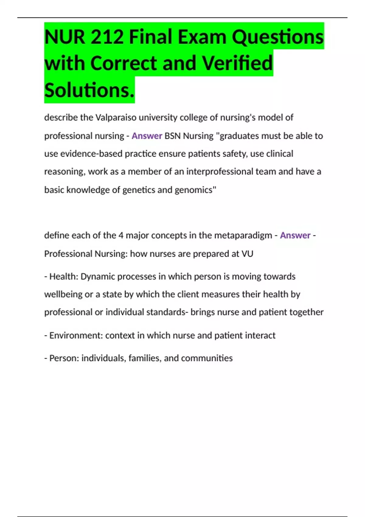 Exam (elaborations) NUR 212 EXAM 3 Questions with Certified Solutions Latest Update. 2 Exam (elaborations) NUR 212 Final Exam Study Questions with Correct Answers . 3 Exam (elaborations) Nur 212 Final Test with Verified Solutions Guaranteed Success. 4 Exam (elaborations) Nur 212 Final Exam Review with Complete Solutions. 5 Exa