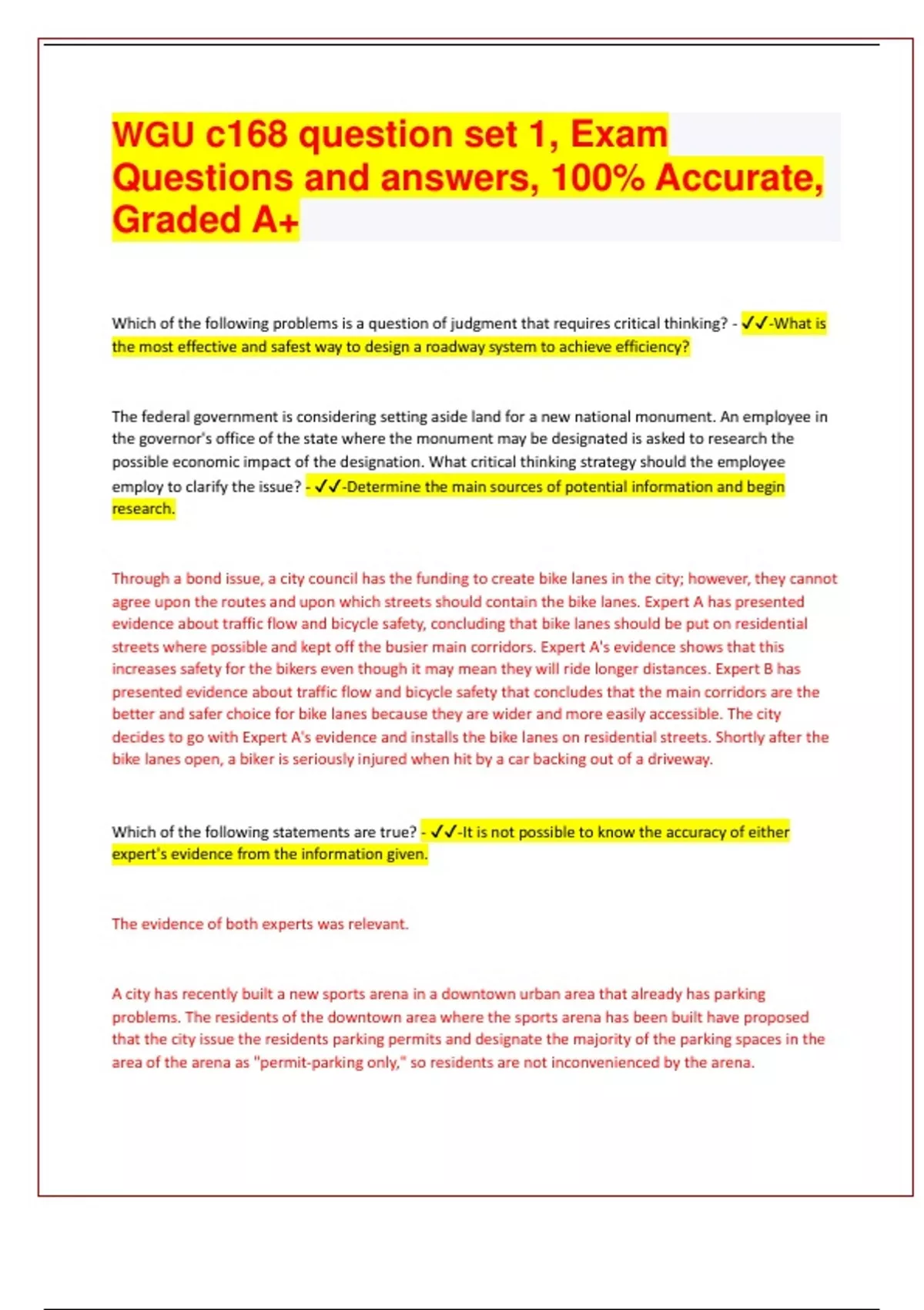WGU c168 question set 1, Exam Questions and answers, 100% Accurate, Graded A+
