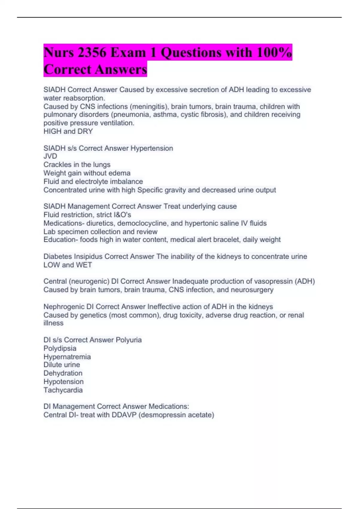 Nurs 2356 Exam 1 Questions with 100% Correct Answers NURS 2356: Cardiovascular Disorders in Pediatrics Exam Questions with 100% Answers NURS 2356 Peds Hematology Exam Questions with 100% Correct Answers NURS 2356: Neurologic Disorders in Pediatrics Exam Questions with Correct Answers