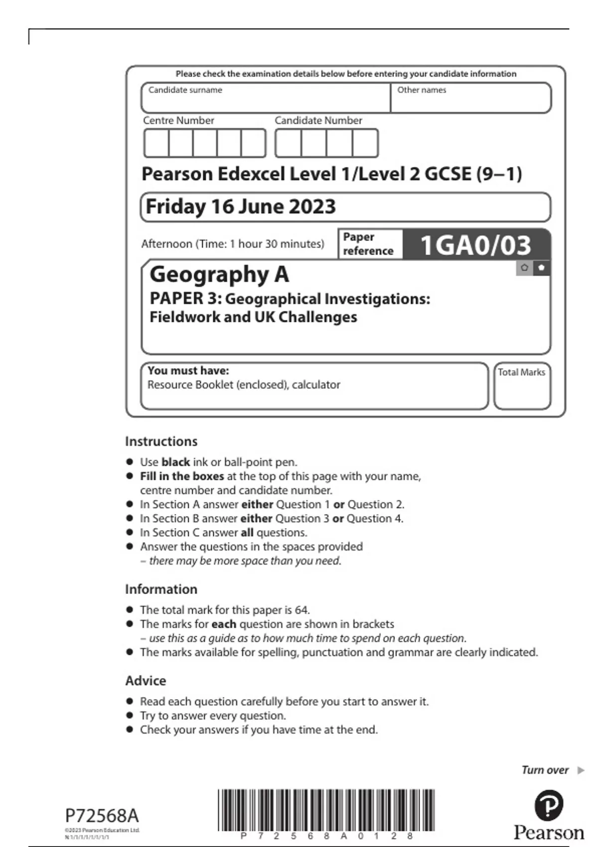 GCSE EDEXCEL June 2024 Geography A Paper 3