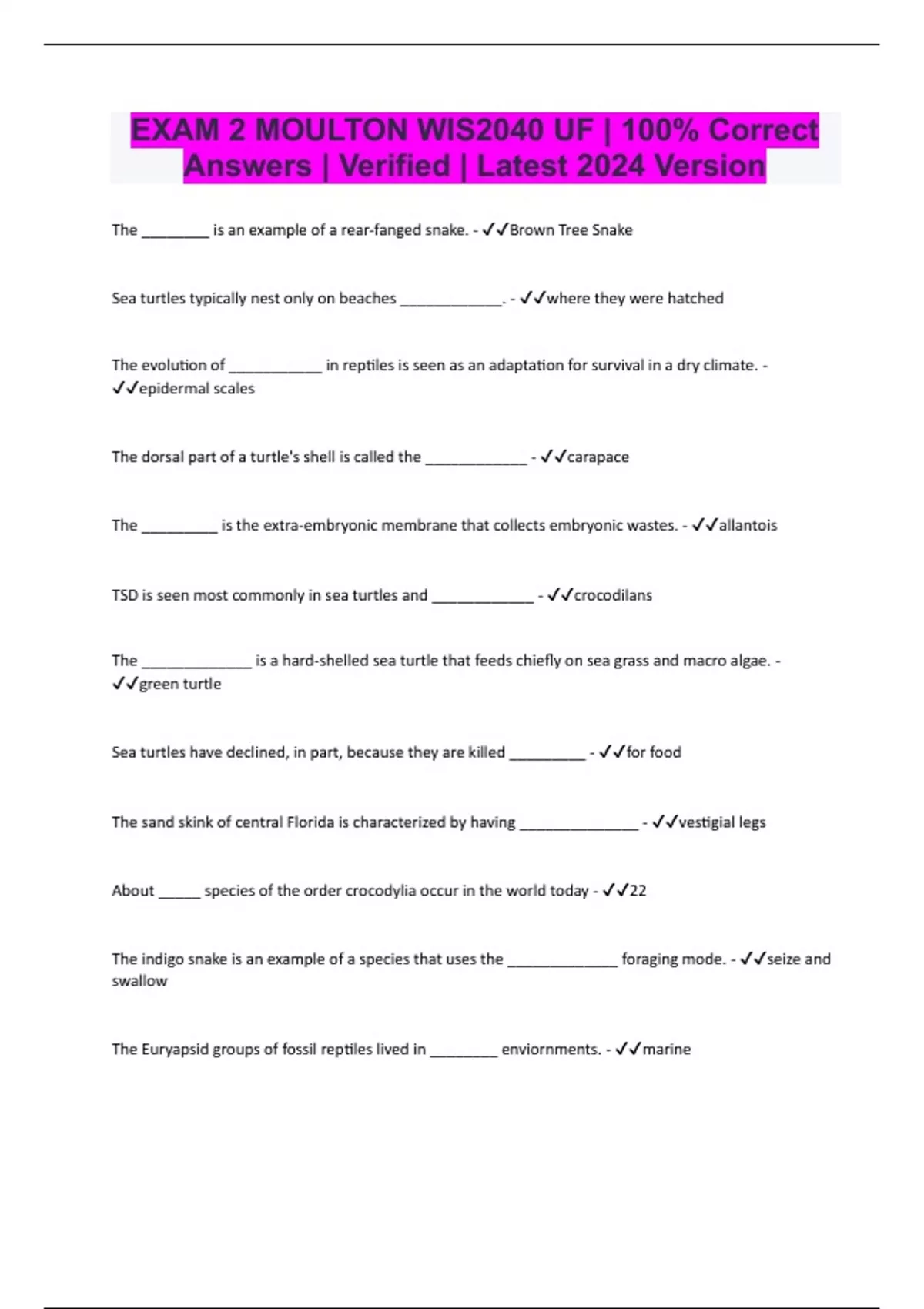 WIS2040 Bundled Exams with Complete Solution | Verified Answers | 2024