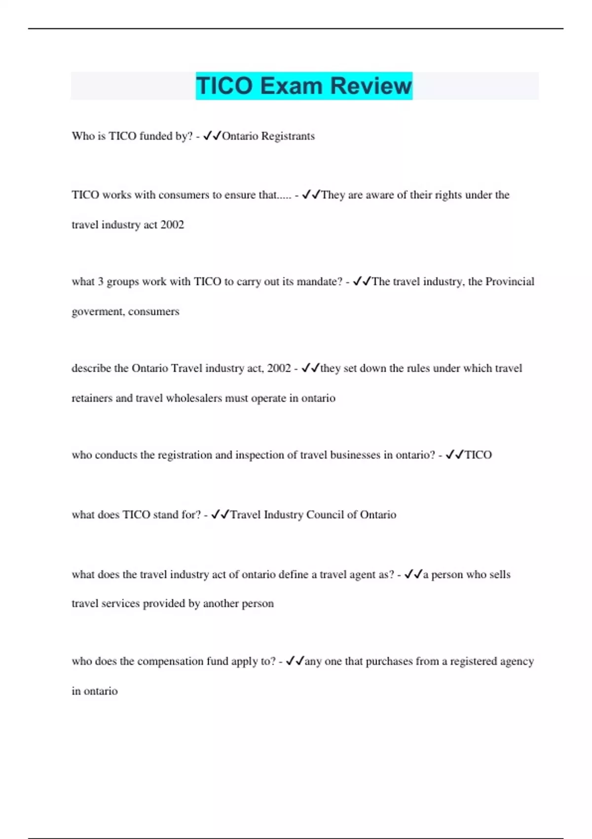 TICO Bundled Exams Questions and Answers with Verified Solutions