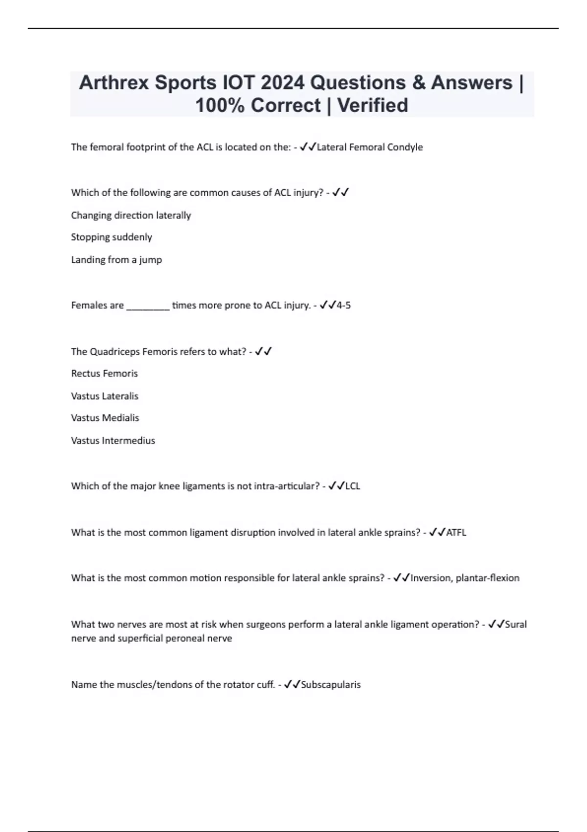 Arthrex IOT Sports Study Guide | 2024 Questions & Answers | 100% Correct | Verified