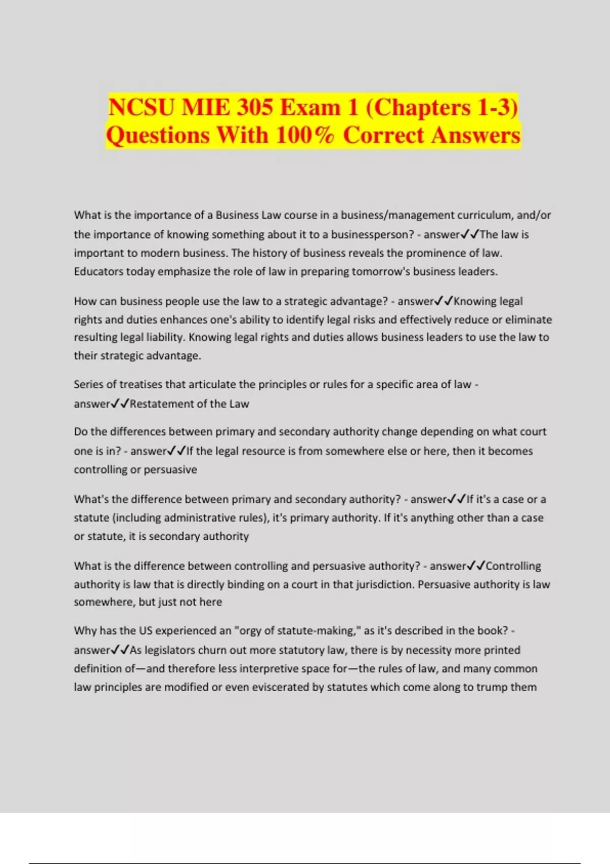 MIE 305 Exam Bundle With Complete Solutions 100% Verified