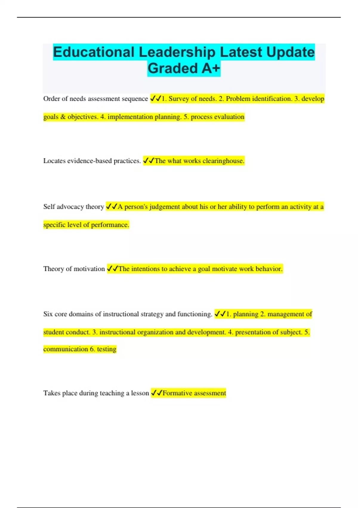 Educational Leadership Latest Update Graded A+