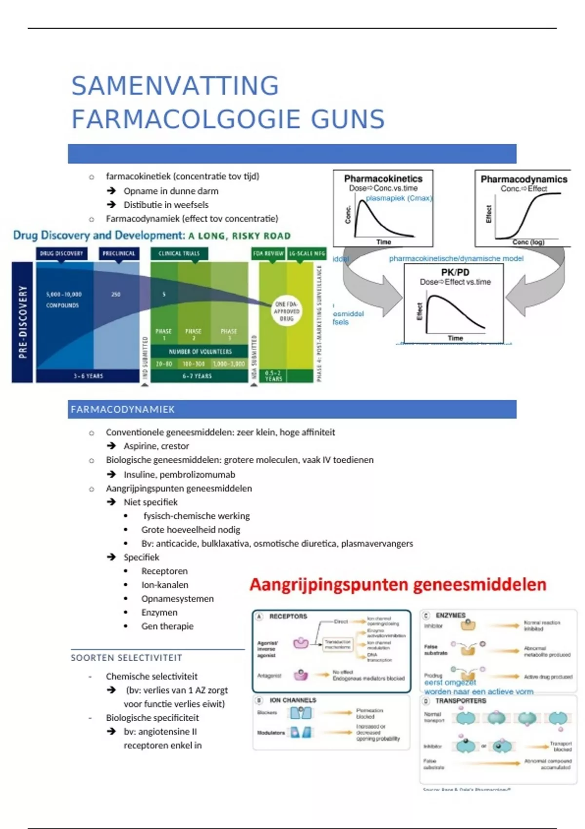 Samenvatting van heel het vak farmacologie (bachelor 2- geneeskunde-farmacie-biomedische)