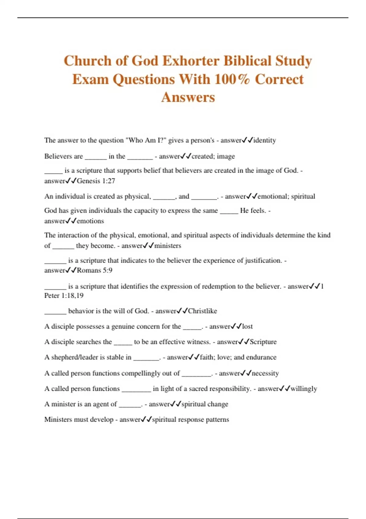 Church of God Exhorter Biblical Study Exam Questions With 100% Correct Answers