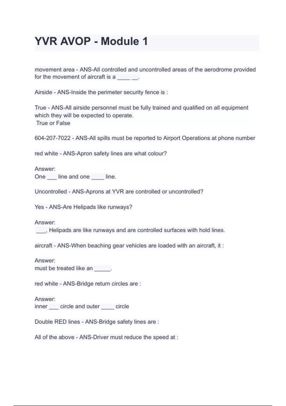 YTH AVOP test questions & answers Bundle