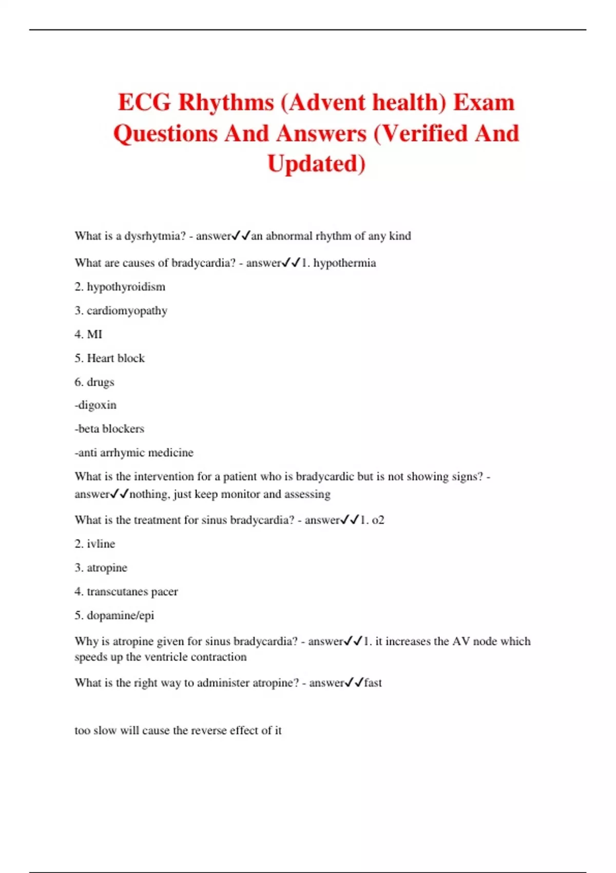 ECG Rhythms (Advent health) Exam Questions And Answers (Verified And Updated)