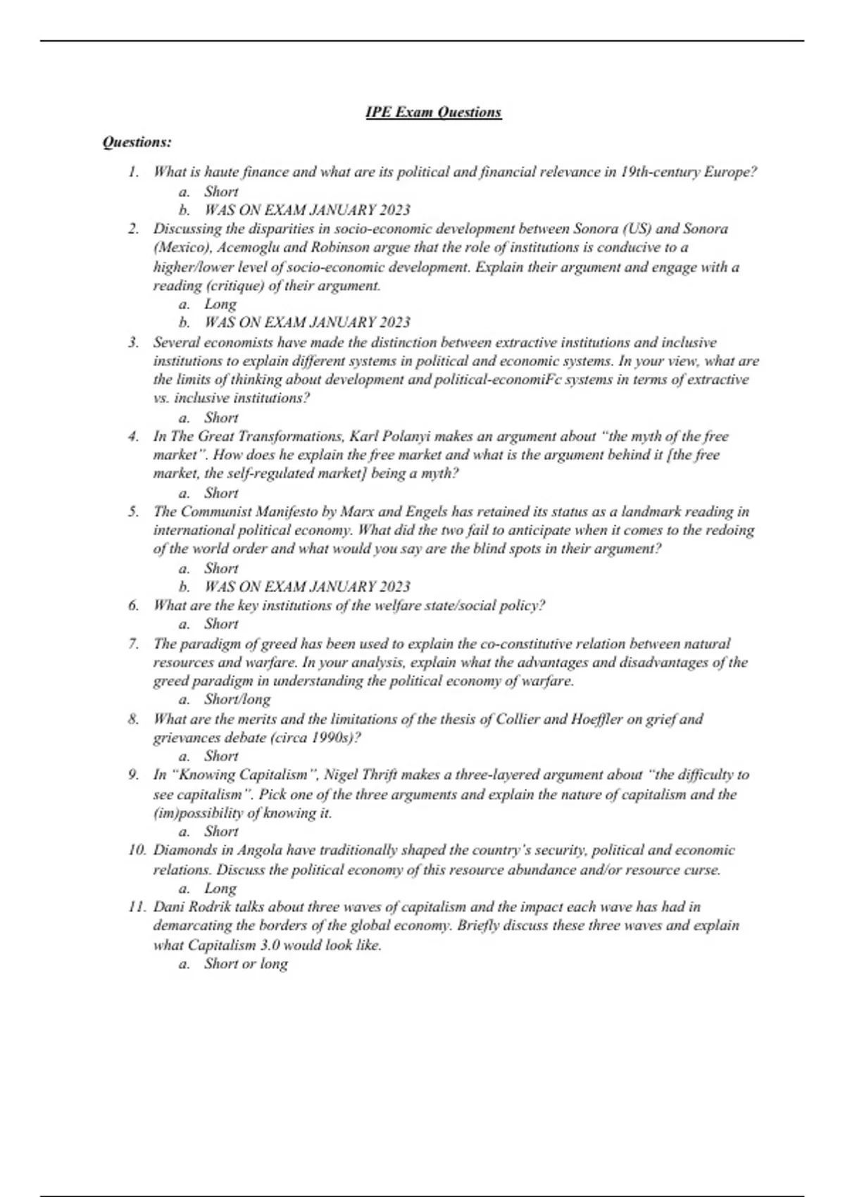 Exam Guide (Elaborations from all readings and lectures 17/20) International Political Economy 2023/2024 (4023477ENR)