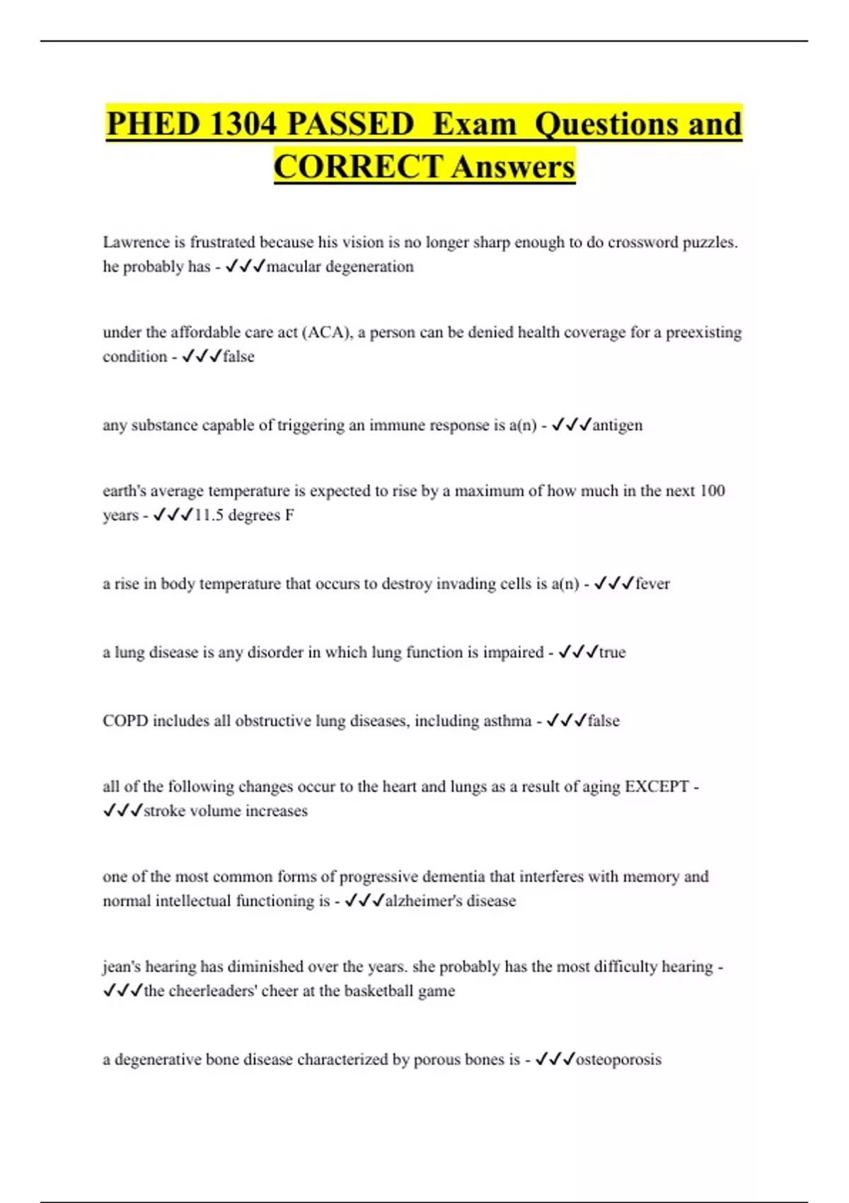 Phed 1304 Bundled Exam Questions Package with Correct Answers