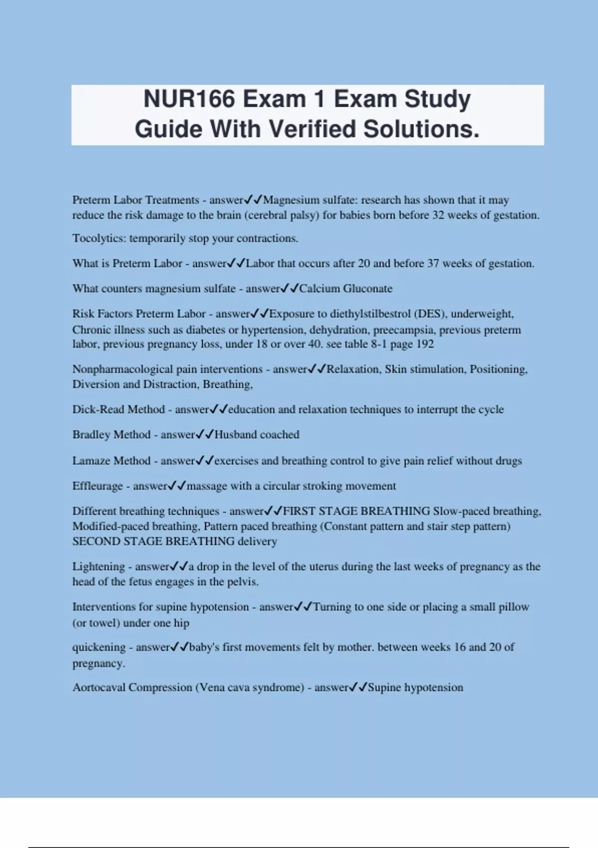 NUR 166 Exam Questions With Verified And Updated Solutions.