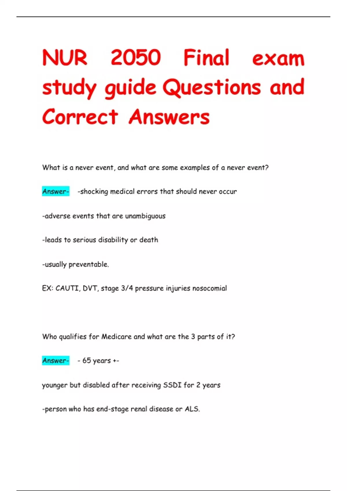 NUR 2050 Final exam study guide Questions and Correct Answers