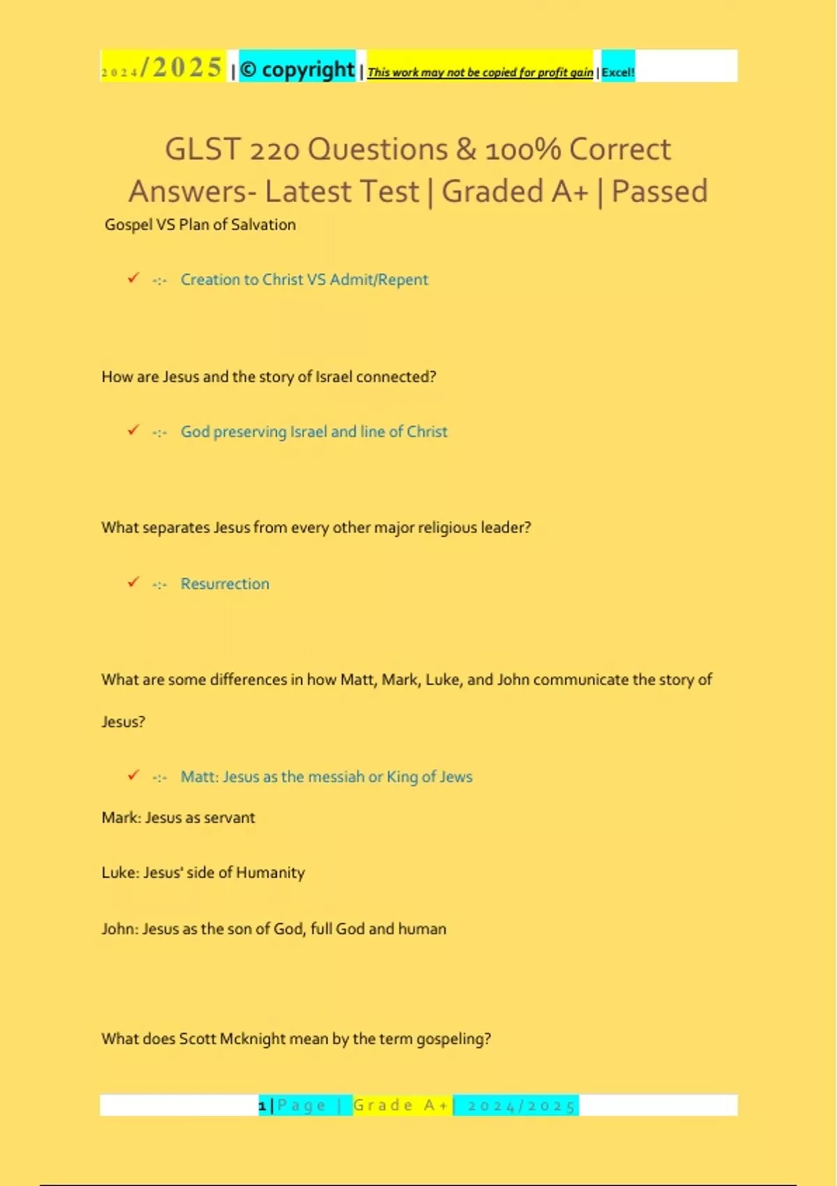GLST 220 Study guide Questions & 100% Correct Answers- Latest Test | Graded A+ | Passed
