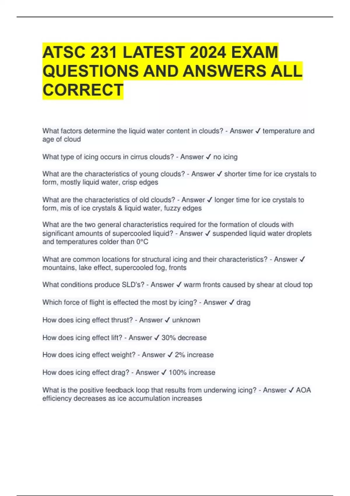 ATSC 231 LATEST 2024 EXAM QUESTIONS AND ANSWERS ALL CORRECT 2 Exam (elaborations) ATSC 231 Test Questions and Answers All Correct 3 Exam (elaborations) ATSC 231 Final Exam Questions with 100% Correct Answers 4 Exam (elaborations) ATSC 231 Exam Questions with All Correct Answers 5 Exam (elaborations) ATSC 231 Block 3 Exam Questions and Answers (
