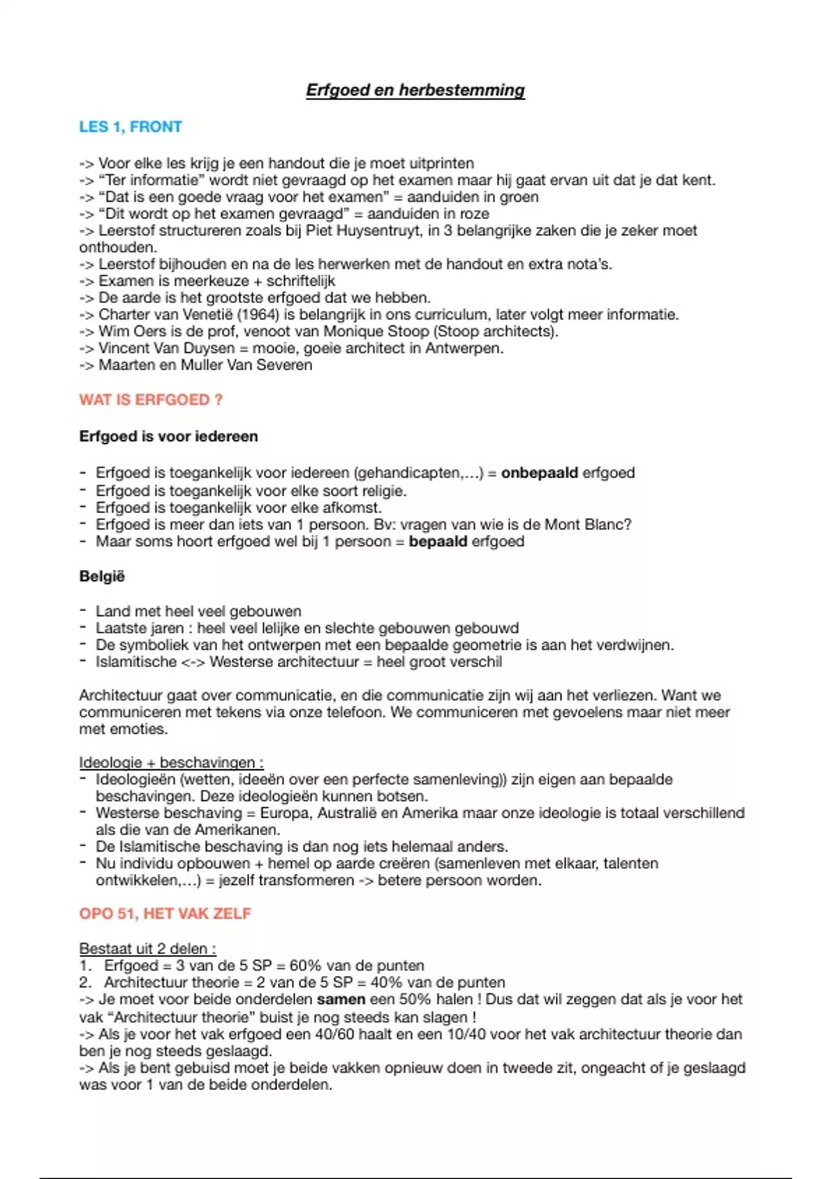 Alle te kennen leerstof voor het examen erfgoed en theorie
