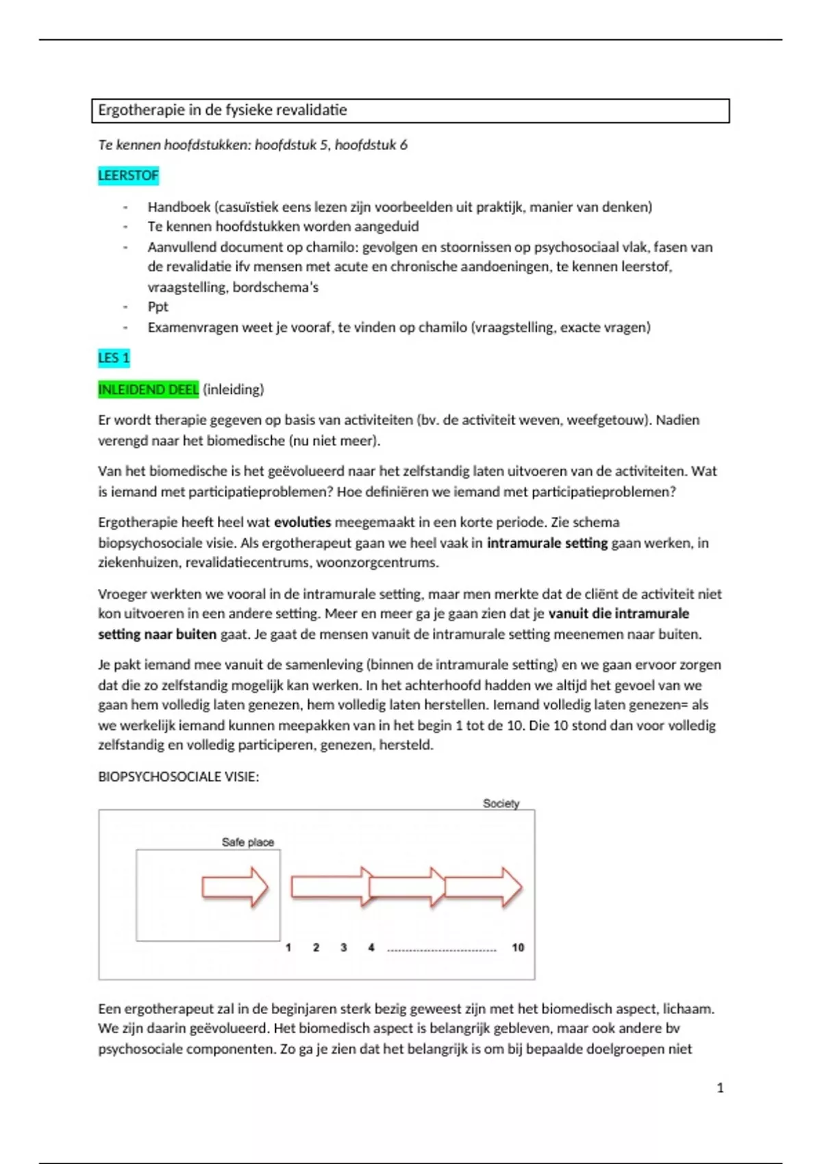 Samenvattingen fysieke revalidatie - bachelor ergotherapie