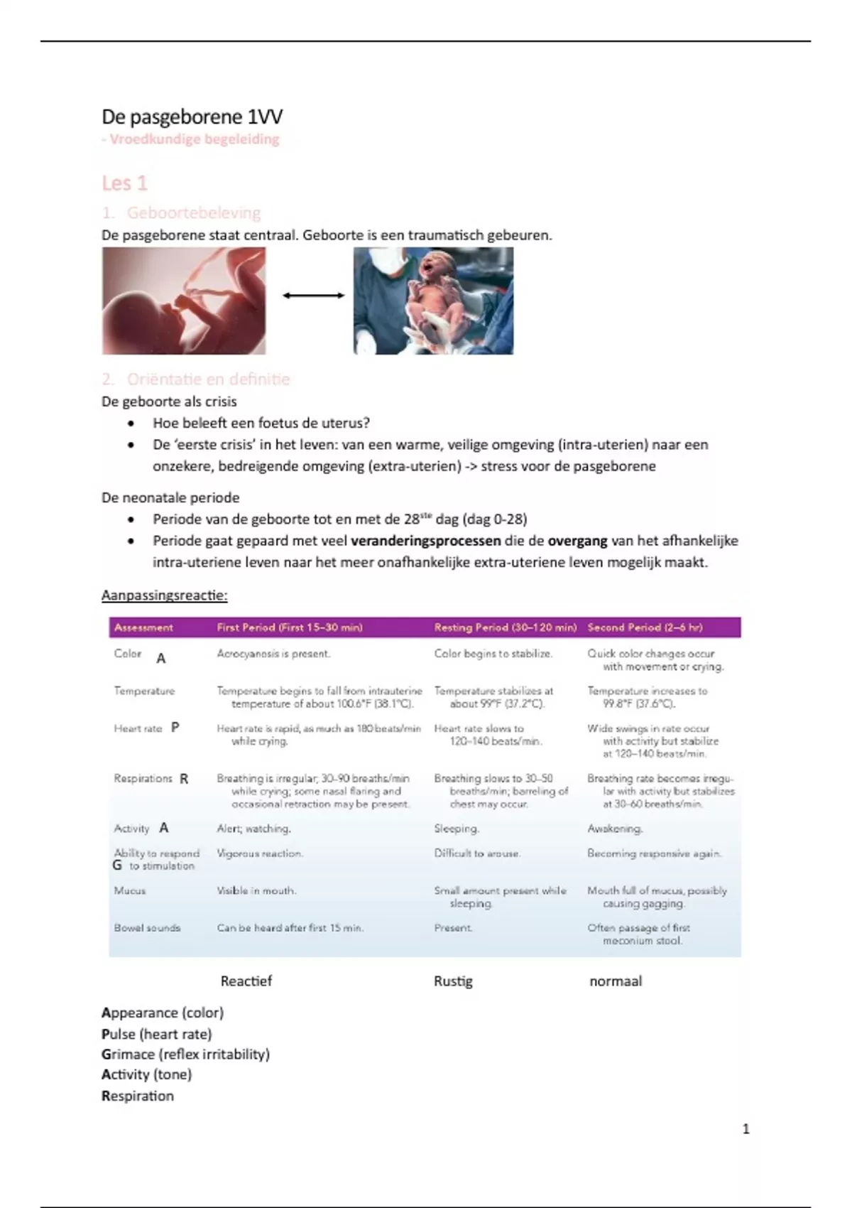 Samenvatting vak de pasgeborene dat gegeven wordt in het eerste jaar vroedkunde op KdG. Ik had met deze sv een 16/20. Alle informatie staat gestructureerd per les. Dit document bevat afbeeldingen om ook visueel te kunnen leren. De belangrijkste zaken worden steeds in fluo aangeduid of in vet gezet. Als je een vraag hebt, mag je gerust een beri