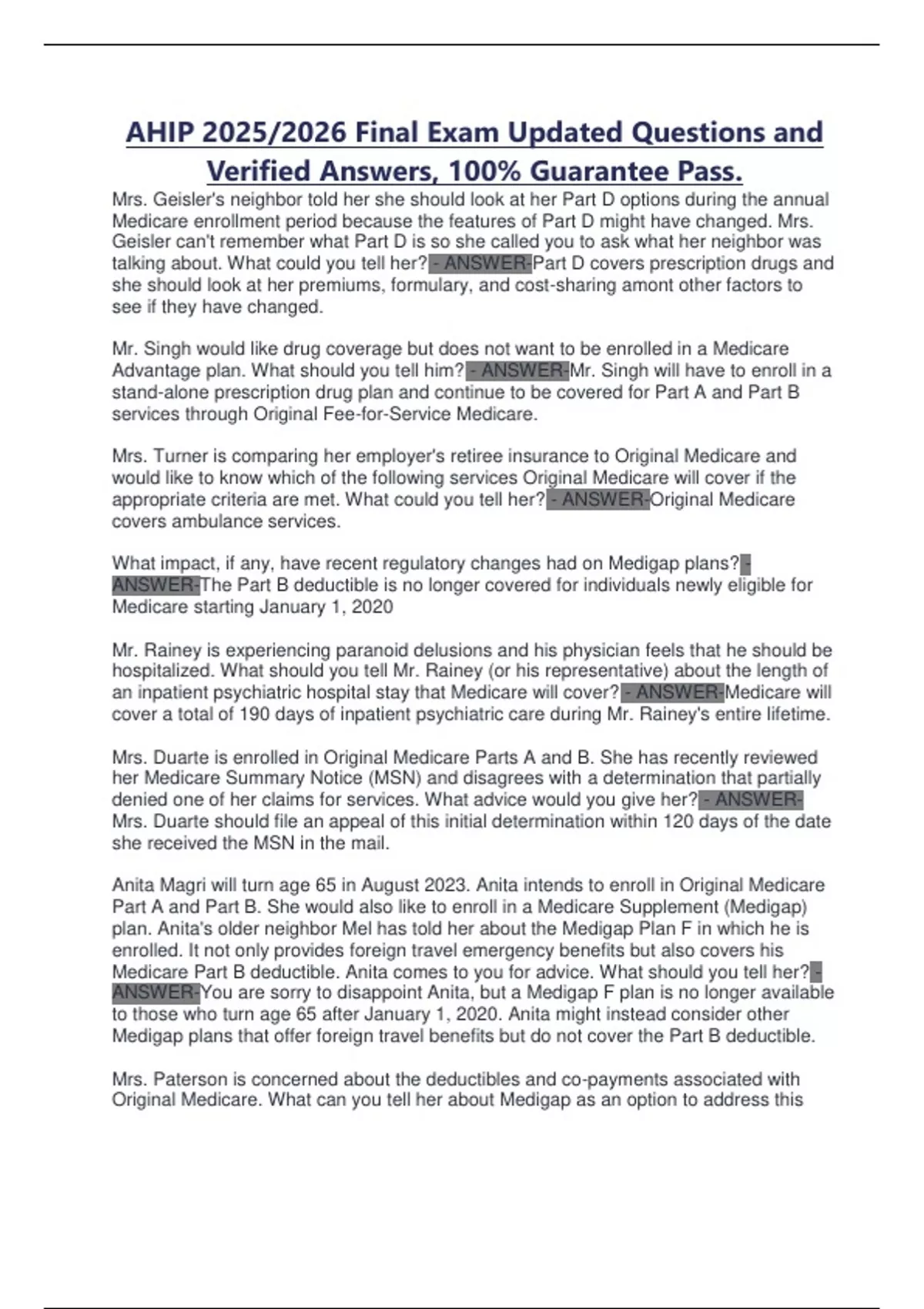 AHIP - Final examination question and answers, 100- Guarantee Pass