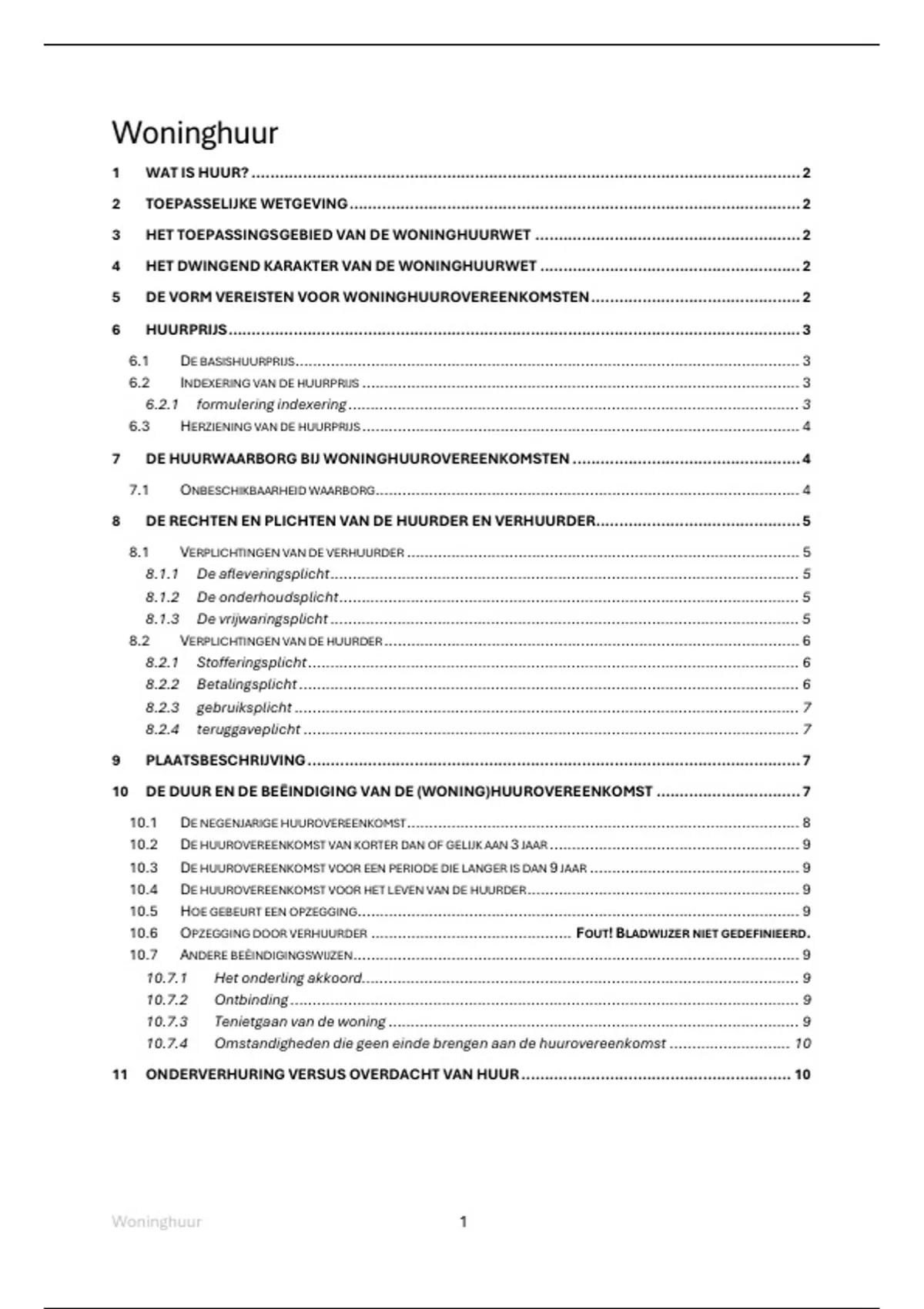 Samenvatting - Woninghuur - Thema's uit het recht (V3F275)