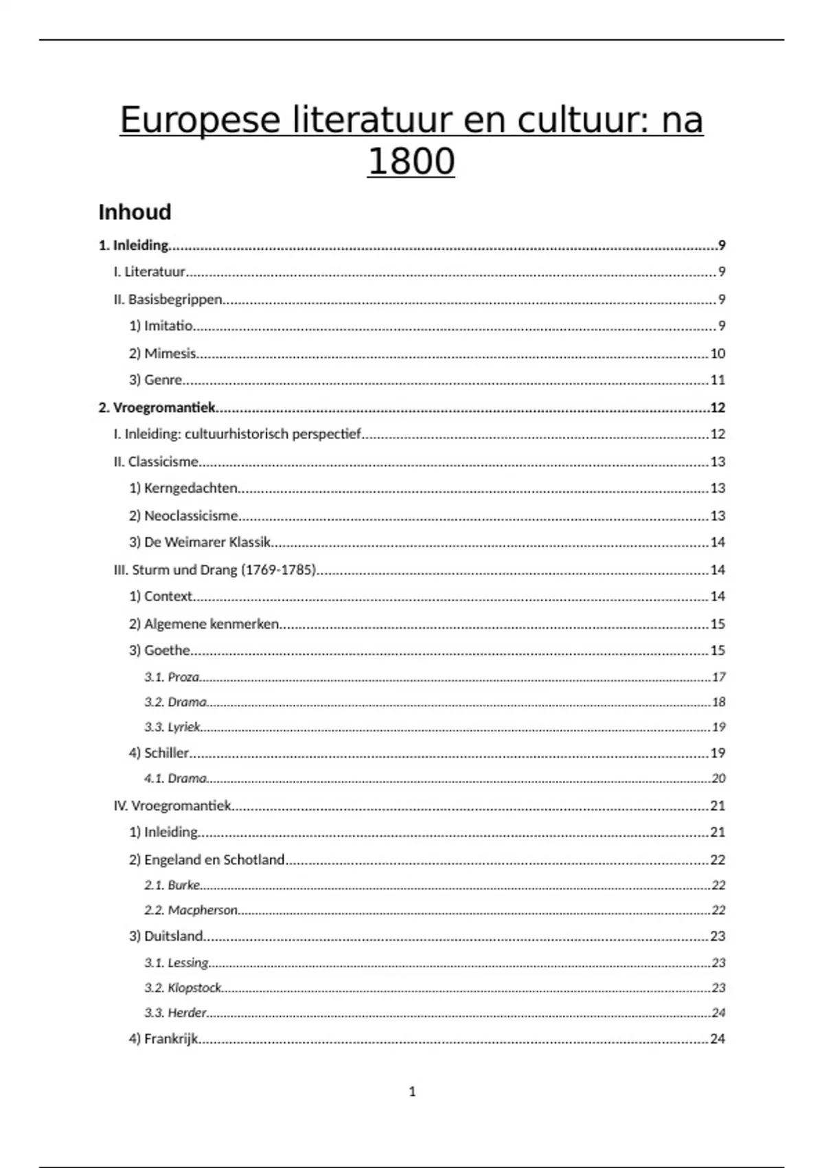 Dit is de volledige samenvatting van 'Inleiding tot de studie van Europese literatuur en cultuur', zowel het eerste deel (voor 1800) als het tweede deel (na 1800).
