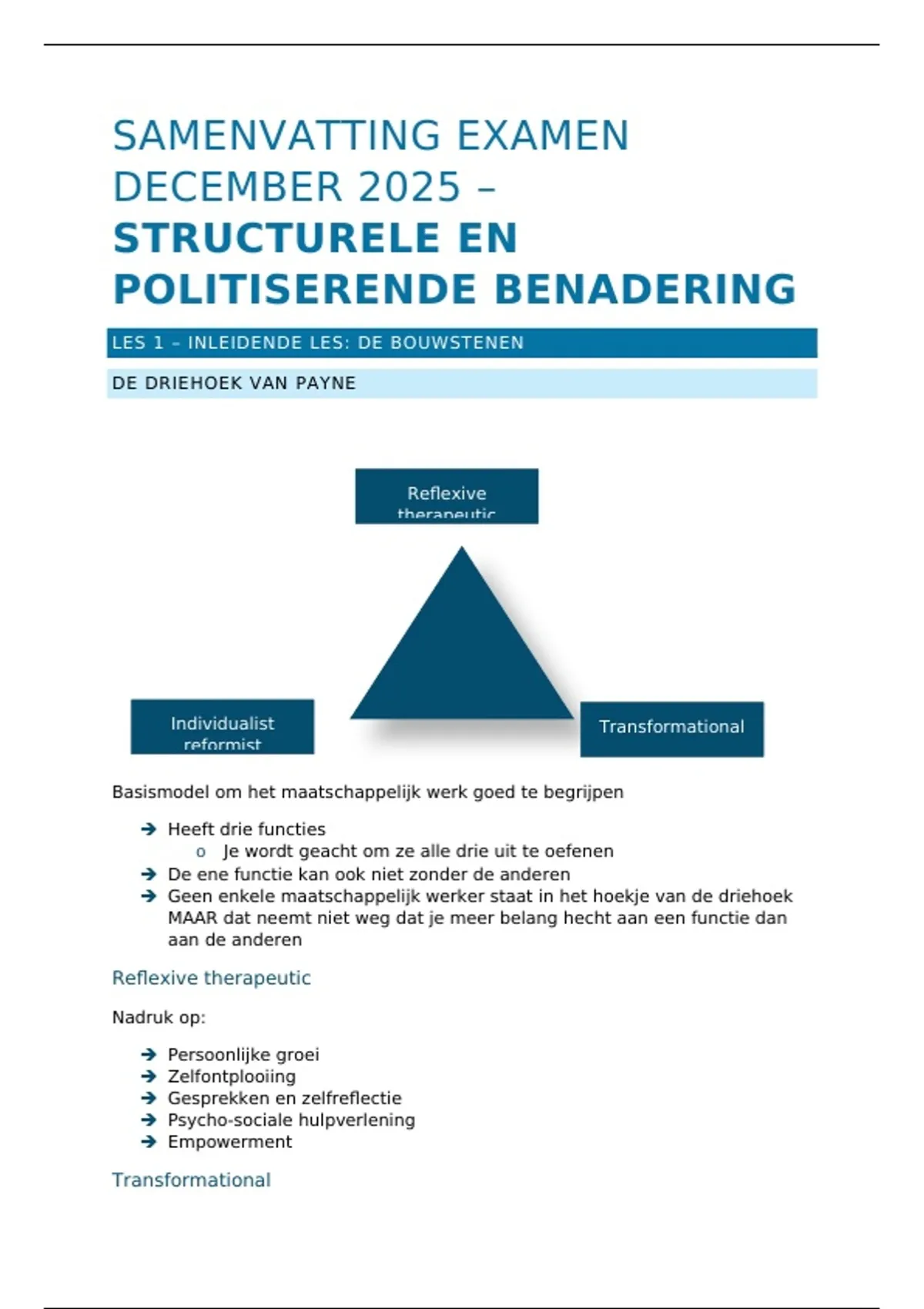 Deze bundel bestaat uit een samenvatting en bijhorende begrippenlijst van het van structurele en politiserende benadering. Mijn samenvatting is gestructureerd en gemaakt aan de hand van mijn notities en PPT. De begrippenlijst zijn de belangrijkste begrippen uit de samenvatting die je moet kennen om je examen te slagen.