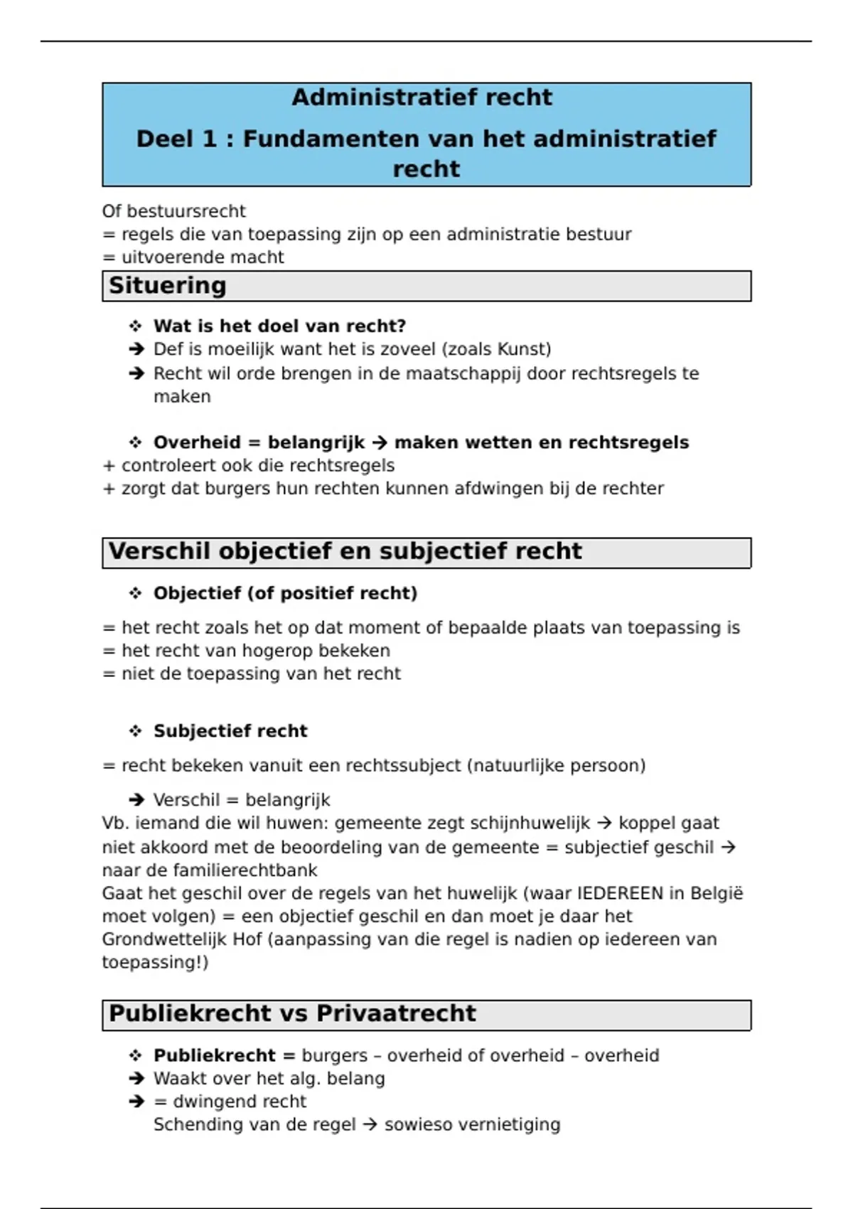 Samenvatting 1e jaar bedrijfsmanagement Rechtspraktijk Vakken administratief recht en Economisch en ondernemingsrecht