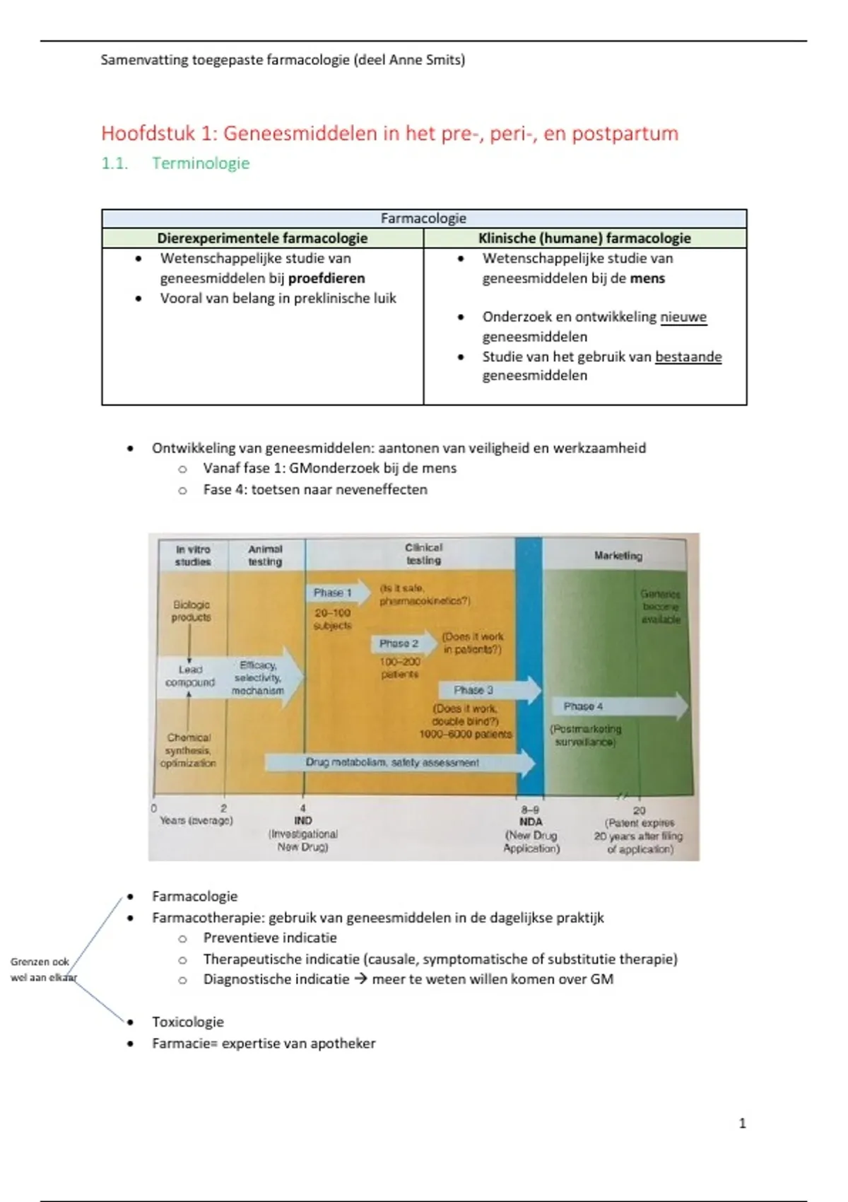 Dit zijn de gebundelde samenvattingen van ALLE hoofdstukken van het vak 'toegepaste farmacologie' (deel door prof. Minne Casteels én Anne Smits) van de master in de verpleeg-en vroedkunde aan de KU Leuven.