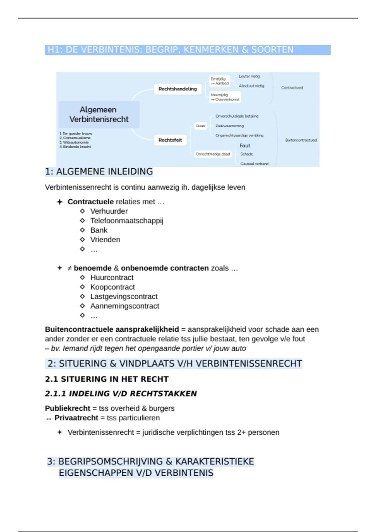 Samenvatting JURIDISCHE TOEPASSINGEN | H1 De Verbintenis Begrip Kenmerken & Soorten