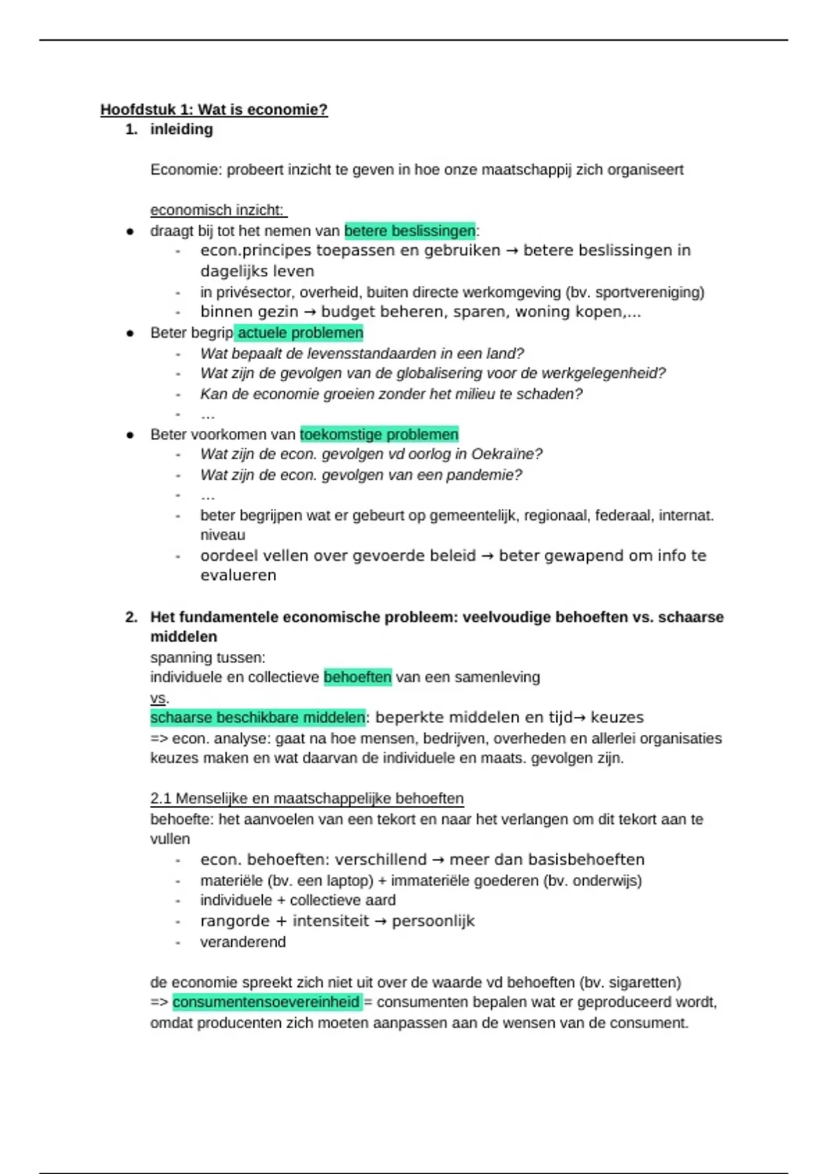 Economie – Hoofdstuk 1: Wat is economie? – Inleidende economische begrippen – Samenvatting theorie en concepten