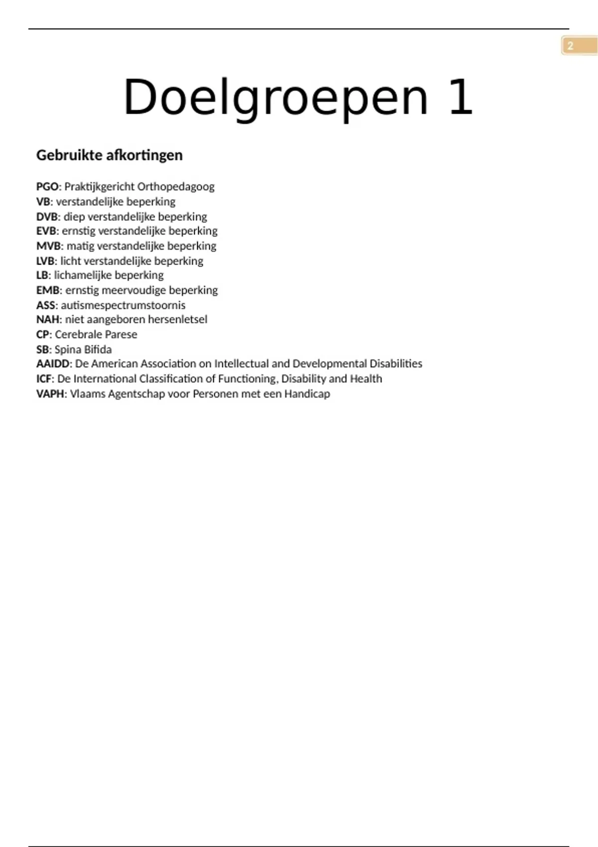 Bundel van Doelgroepen 1,2,3. Dit vak heb je in het eerste jaar van orthopedagogie. Met deze bundel heb je een euro korting per document!