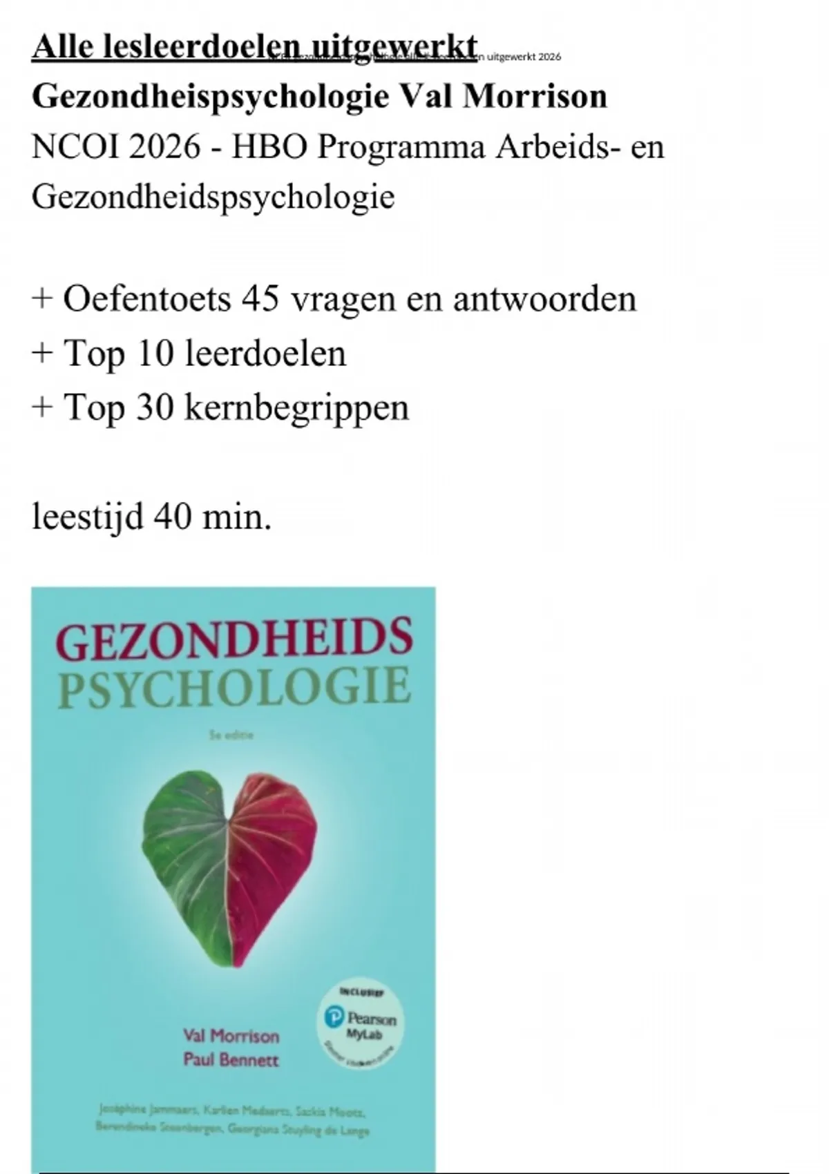 ,NCOI gezondheidspsychologie alle lesleerdoelen uitgewerkt 2026