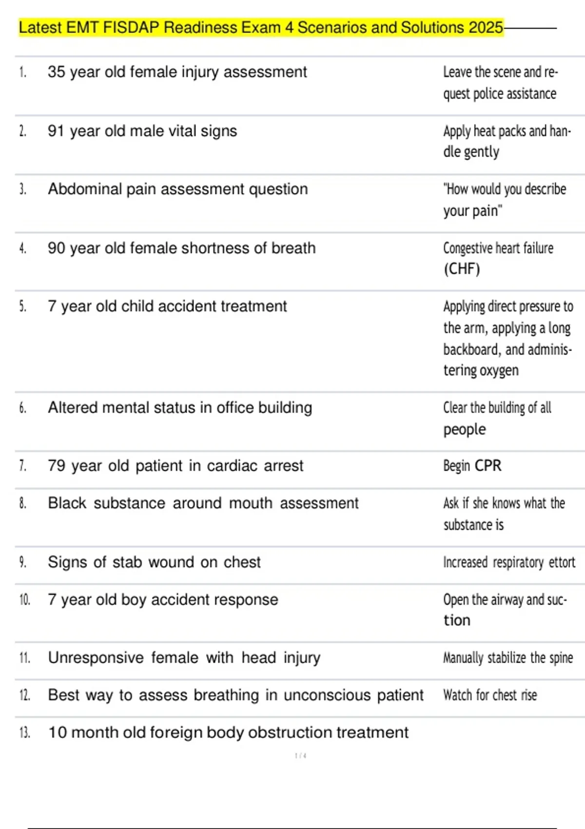 Latest EMT FISDAP Readiness Exam 4 Scenarios and Solutions 2025