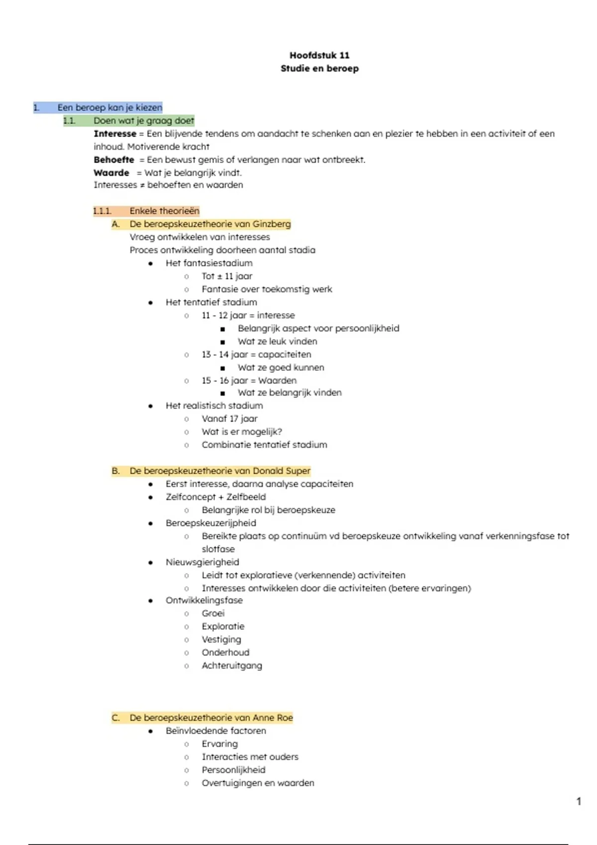 Samenvatting van het hoofdstuk rond 'Studie en beroep'
