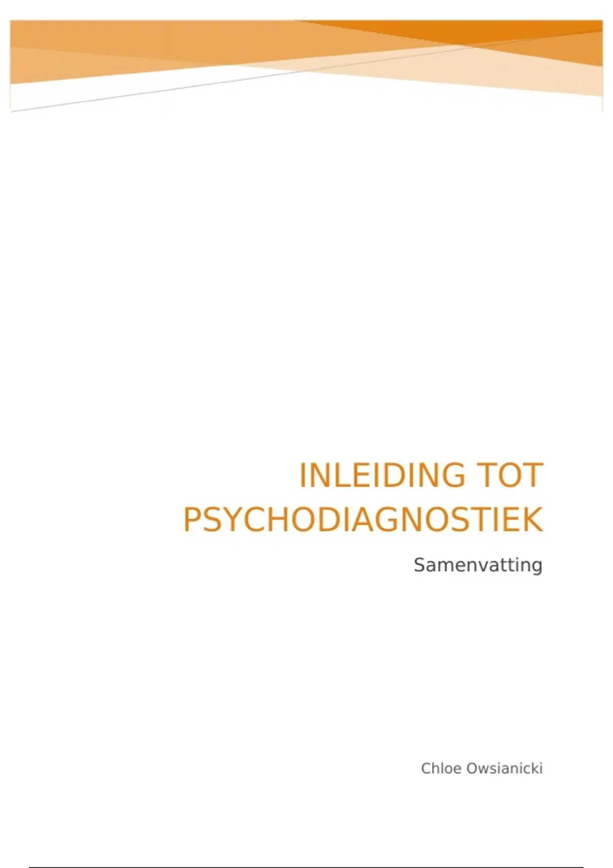 Zelfgemaakte samenvatting van het vak inleiding tot de psychodiagnostiek, gegeven in het eerste jaar toegepaste psychologie aan de PXL. Ik gebruik vooral bulletpoints en tabellen om het overzichtelijk te houden.